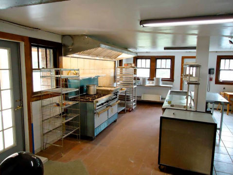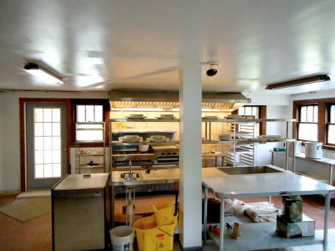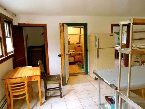 Kitchen area, walk-in cooler
